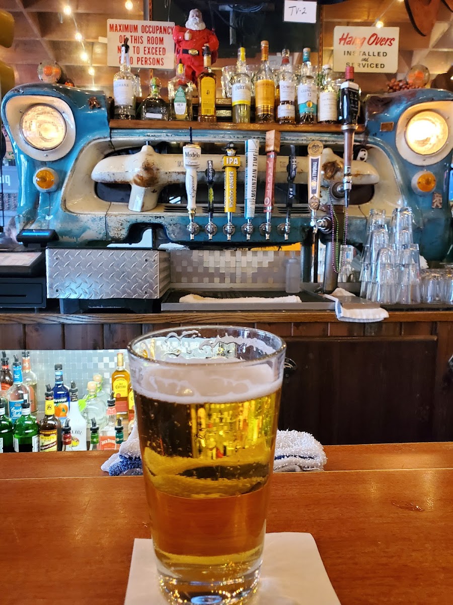 As you step inside, the classic darker interior envelops you, providing a cozy atmosphere perfect for escaping the summer heat after a day of exploring the great outdoors. Enjoy a drink while lounging at the wraparound bar, complete with comfortable armrests that invite you to settle in for the evening. Patrons rave about the "vintage decor" that gives Wheel Bar its unique charm, making each visit feel like a trip back in time.